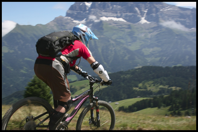 The rider’s week in August is aimed at regular bikers who want a holiday riding great trails with other women, and getting some coaching along the way. Jo, a fully qualified French guide and instructor who coached the 2009 dirtgirls (and the French youth DH team!) will be running the skills sessions. Mountain girl Ulrika will be guiding again this week; not only is she fast on a bike, she can tell you the name of every flower, tree and animal you pass – and usually an interesting fact about it too!