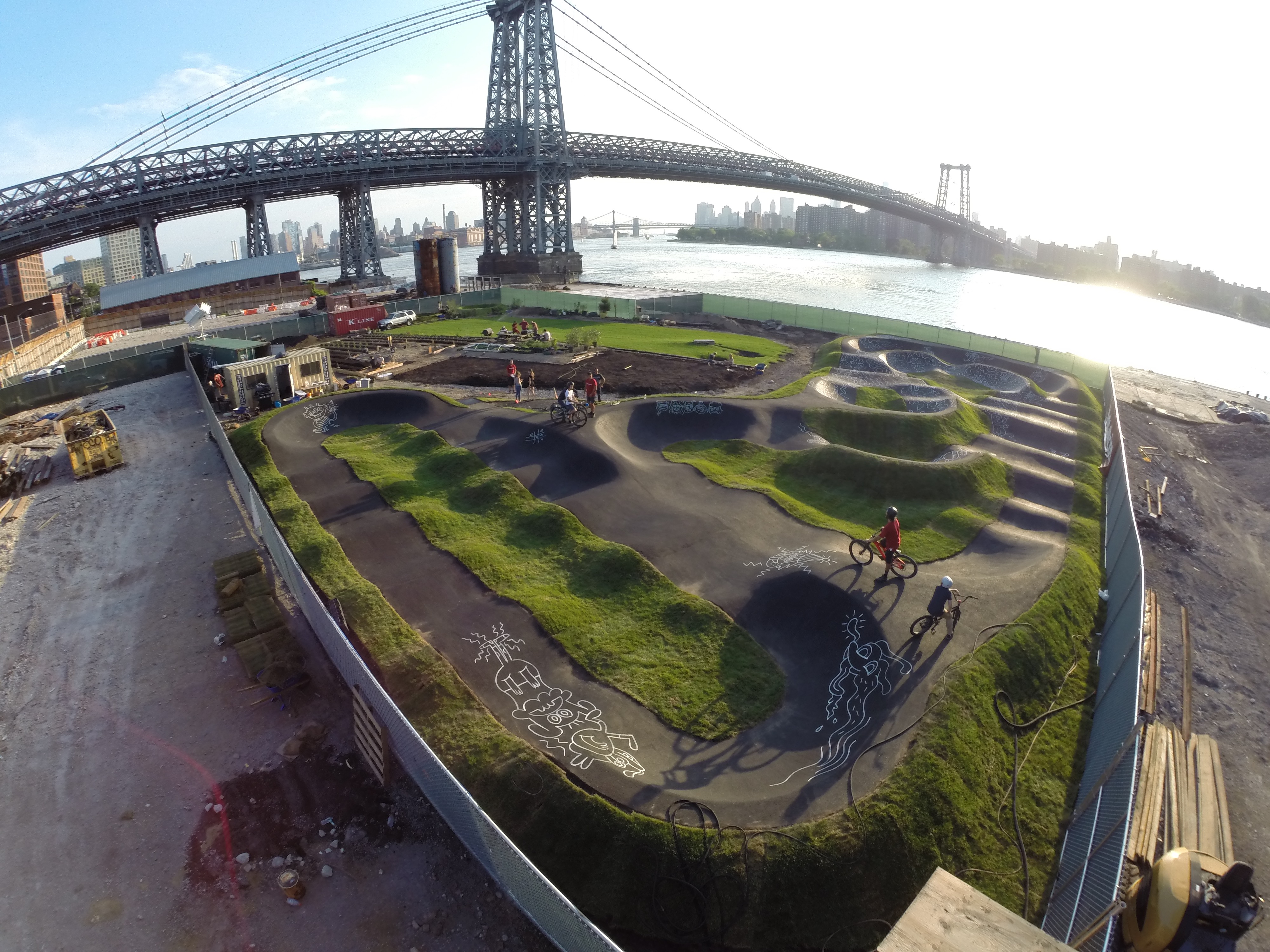 For those of you that need reminding, Velosolutions is Claudio Caluori’s (him off the World Cup commentary duo… you know, here) company. With his trusted team he has worked on some amazing building and construction projects in many different parts of the world. Who can forget the amazing pump track they built in New York city (see photos below)? Or this one in Thailand?