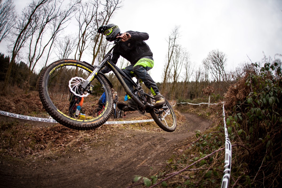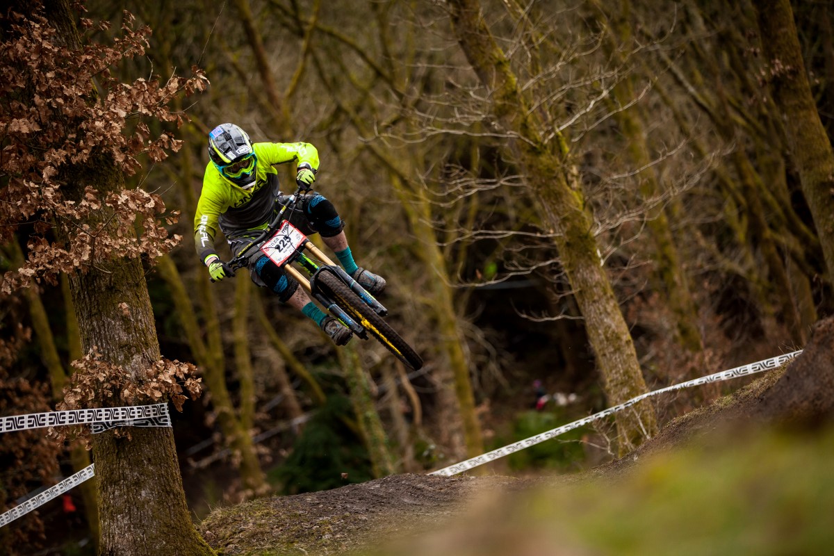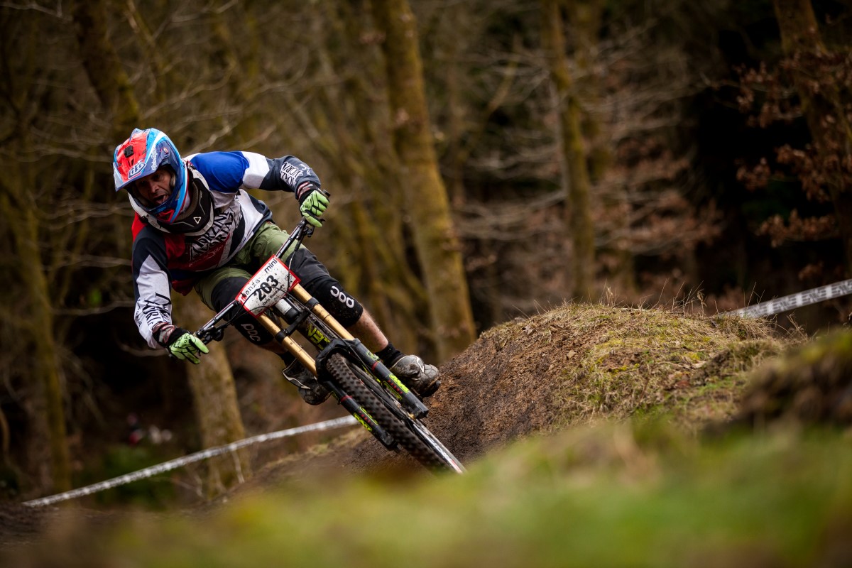 A great thing about MiniDH is the strong ladies field – with over 20 racing. Rosy Monaghan took the Youth girls win ahead of Corinna Brisbourne. Senior Ladies saw Abbie Sloan take a good winning margin in front of Maddy Brown and Chloe Buys. Master Ladies saw Irish Erika Mcdermott literally edge Ellie Dewdney by a tire knobble (0.009 of a second) with Ami Grindley bringing up the top 3. Veteran Woman saw Rene Stent taking a convincing 21 second victory over Susan Digges La Touche and Gayle Atherfold-Dudley in 2nd and 3rd.