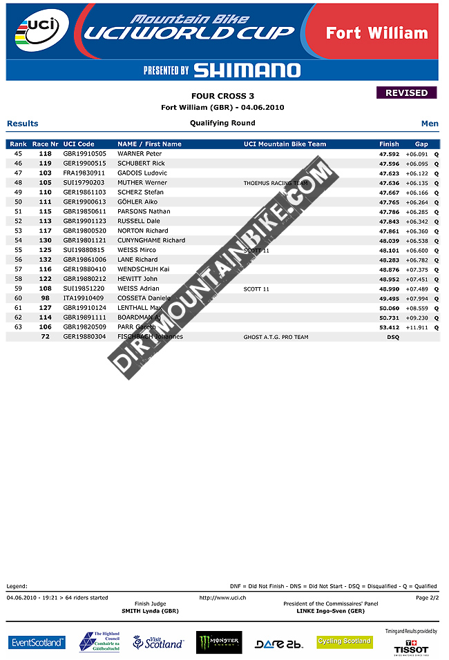 Greg Minnaar retains the leaders jersey after World Cup round two at Fort William. Gee Atherton is in second and Kiwi Cameron Cole rockets up...