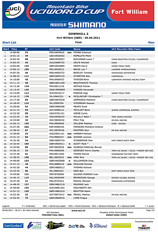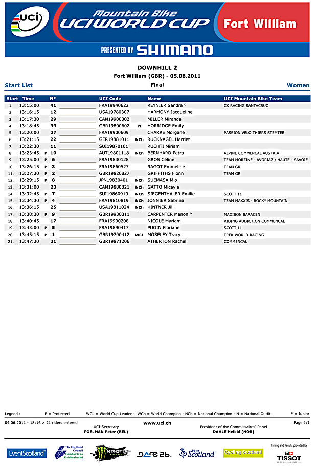 World Cup finals kick off today, here are the start lists and a quick eye on the weather