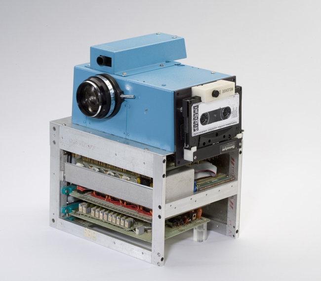 …UPDATE…Andy in the comments recognised it as the worlds first digital camera, it recorded the image on to a cassette then pipes them via a microcomputer on to a telly. Check here for the info.