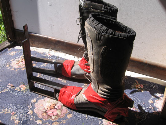 “I’ve never worked in an office before, and believe it or not, it can get quite stressful here at Dirt sometimes. I needed to relax somehow, so I decided to make a pair of relaxation boots, the idea being that I can dangle upside down for a bit and just chill out. Anyway, I tried them out for the first time this morning and it proved anything but relaxing…”