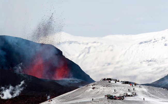 The good thing about the exploding volcano and the resulting grounding of areoplanes means that today is one of the very few days that we can look up and see a perfectly blue sky with no jet vapour trails. Sweet.