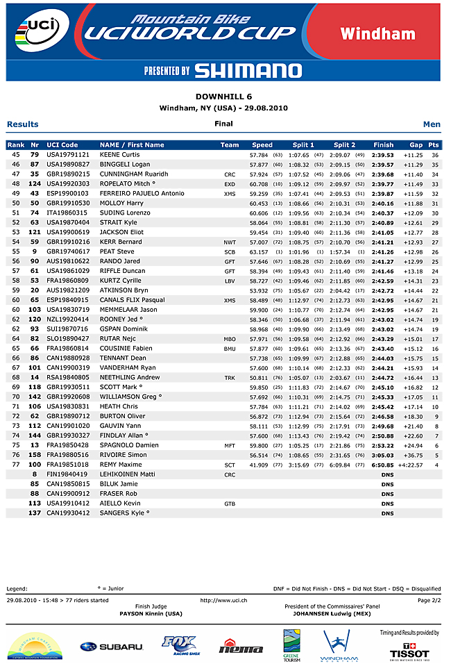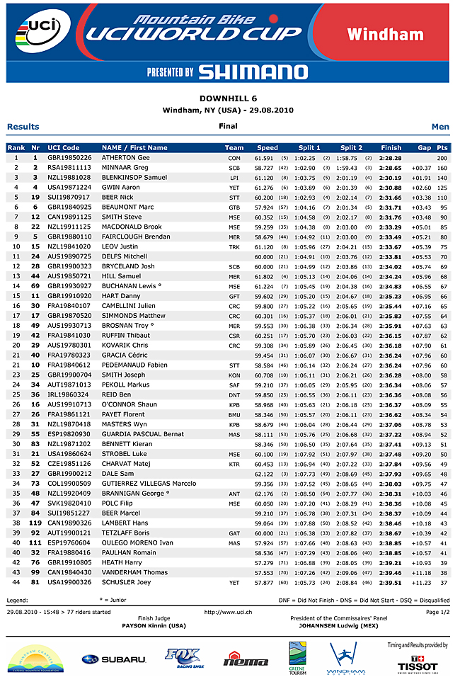 Fastest qualifier Steve Peat was on fire and smoking Gee’s time but went down hard in the drop near the bottom.
