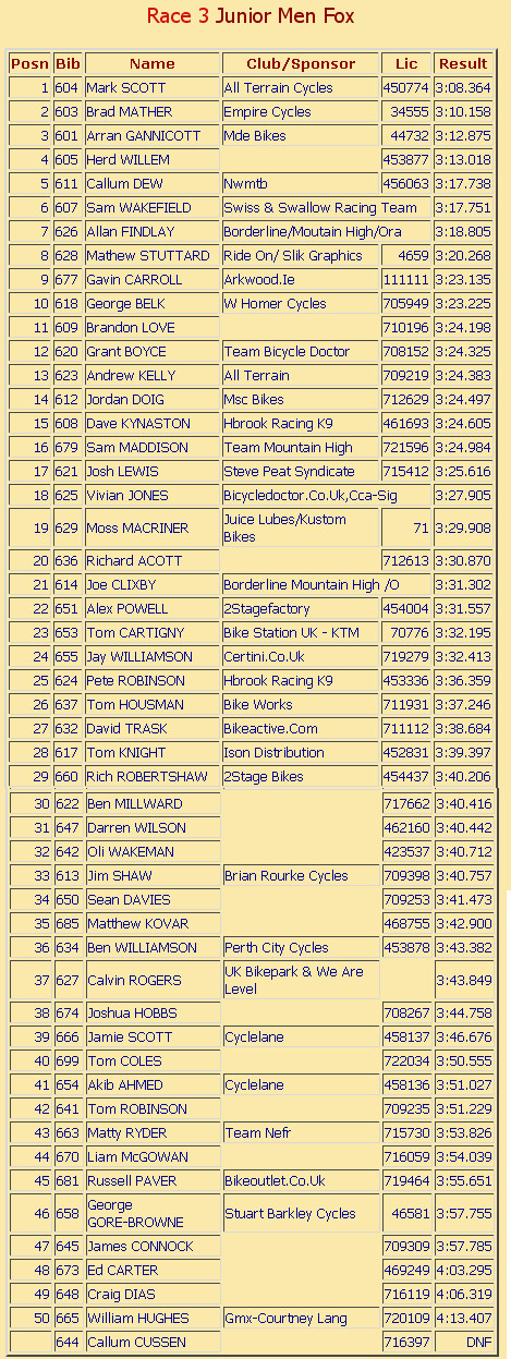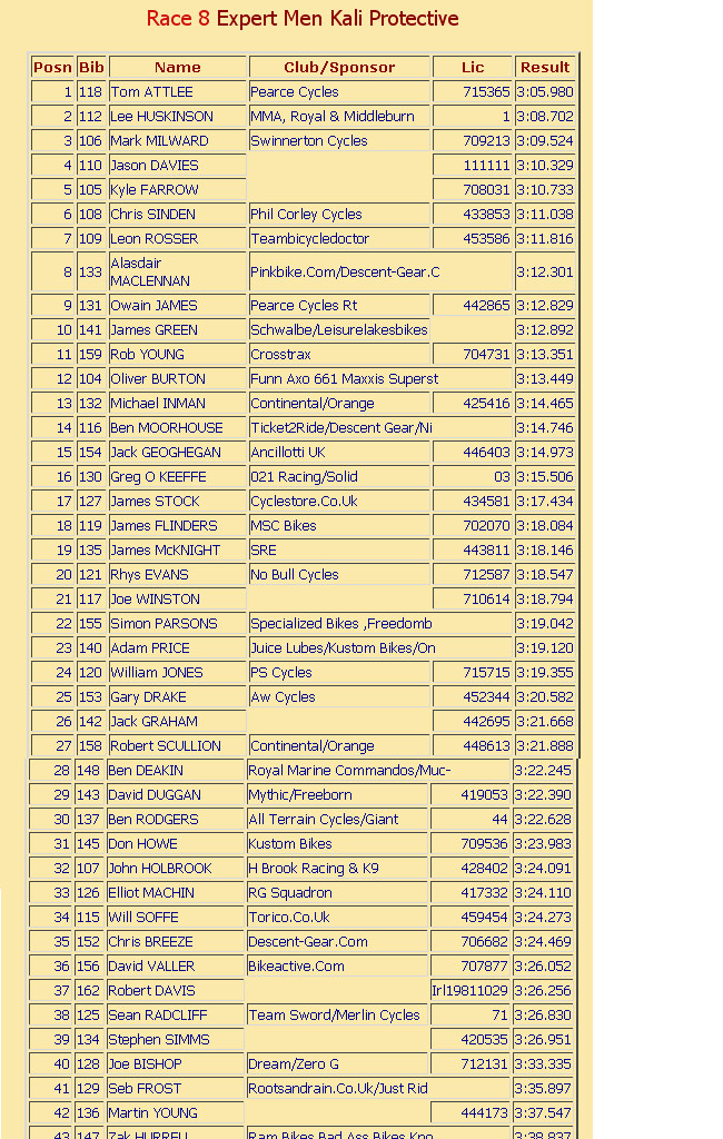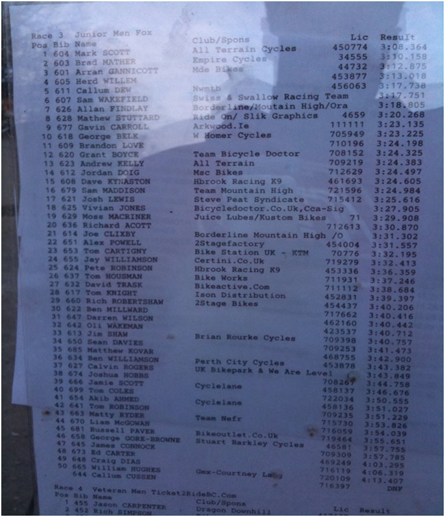 Dan Stanbridge is beaming in the result sheets on his aye-aye-phone, bit of a pickle I know, but worth a look until we get the pdf results.