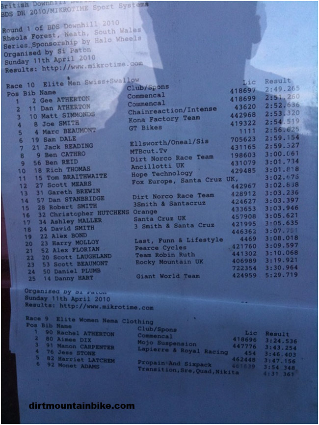 News just in from Round 1 of the Halo BDS (British DH Series) in Rheloa, South Wales. The Athertons were in great form, with Gee taking the win in the elite mens, brother Dan in second and sister Rachel (in her third race back from injury) took elite womens.