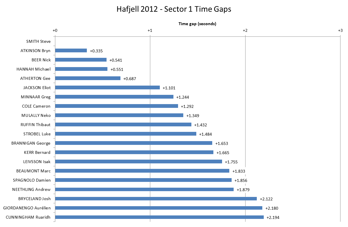 Steve Smith’s consistency across all three sectors told in a race where so many riders seemed to have at least one bad section. Brannigan lost out in Sector 1, Minnaar and Atherton were consistent but hovering around 5th to 7th in most Sectors apart from Minnaars 3rd in Sector 3. Nick Beer started quickly but faded to 9th and 11th in Sectors 2 and 3. Cameron Cole lost out in Sector 2 with only 16th fastest whilst Mick Hannah, Neko Mullaly and Bryn Atkinson all started fast but couldn’t put together a full run at that pace.