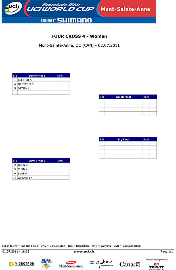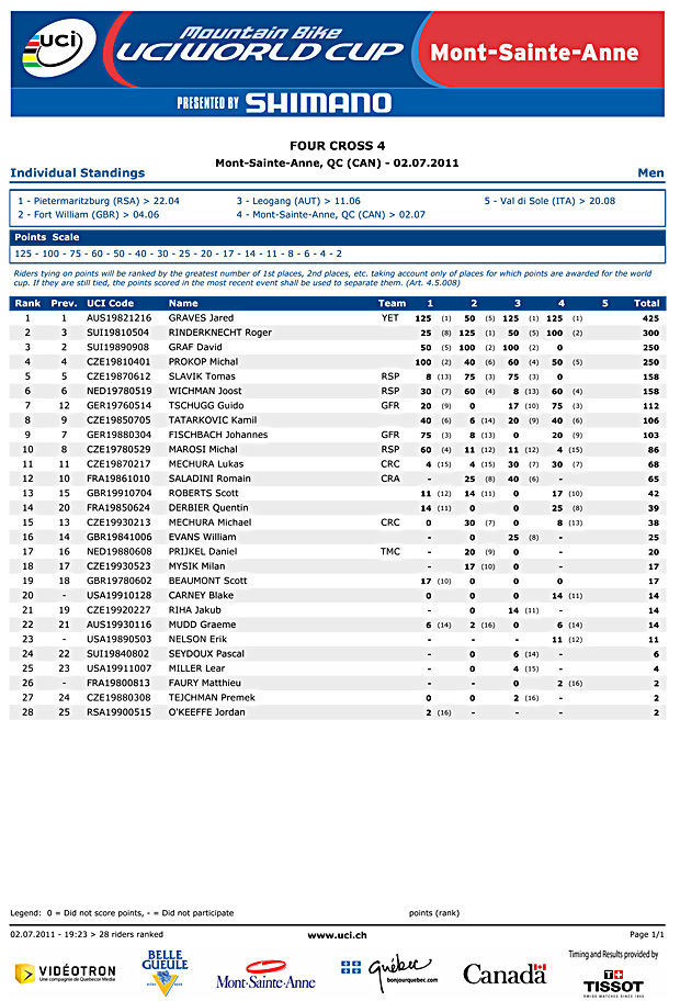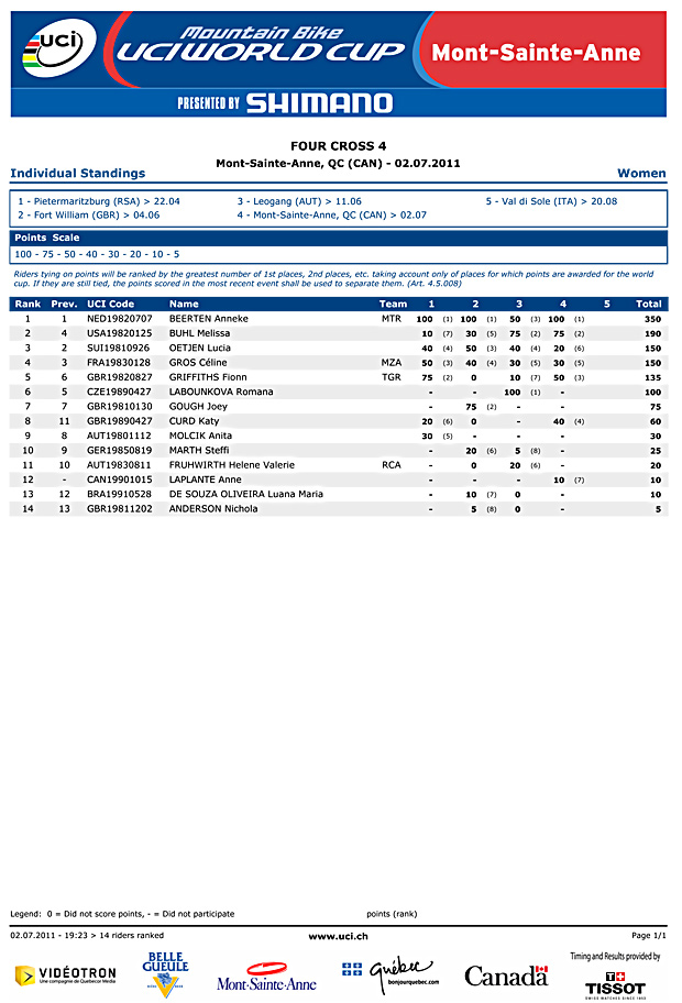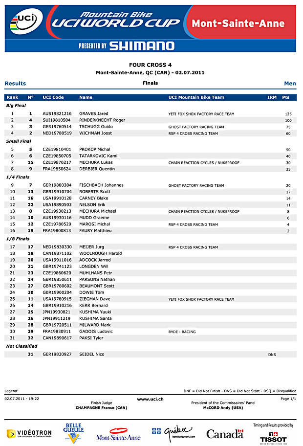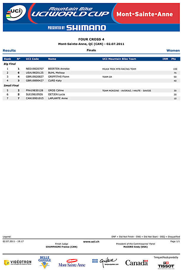 Graves and Beerten win Mont Sainte Anne 4x/Results
