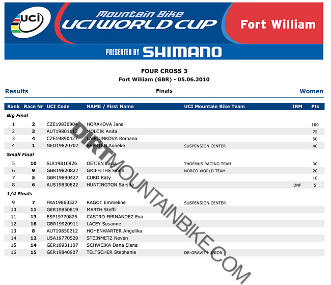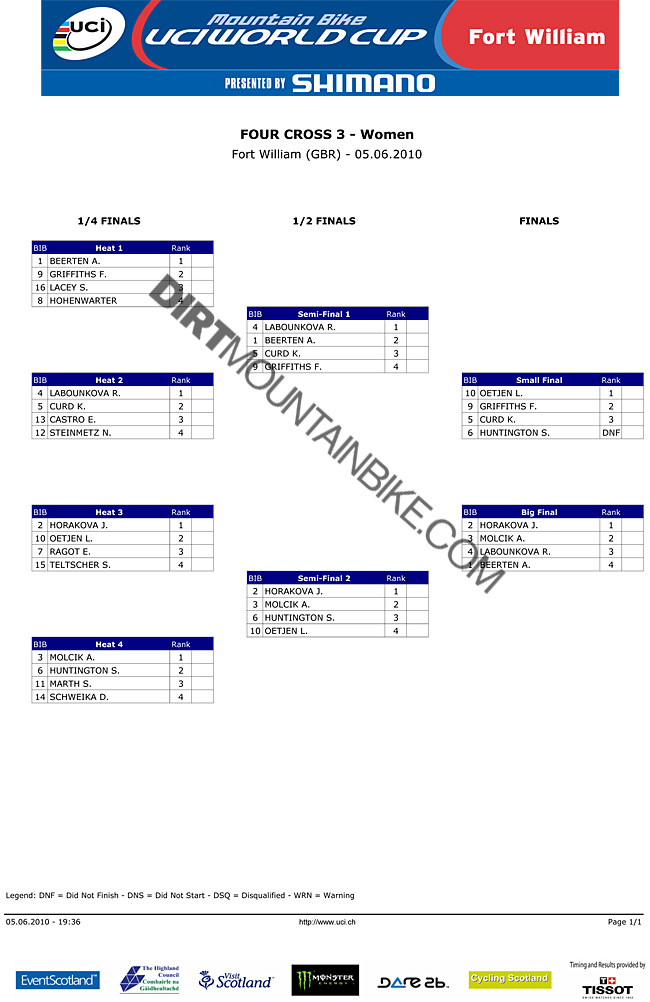 In the women’s race it was Horakova that had a clean and uneventful run down the hill. Some may have seen Anneke Beerten as the favourite, but she ended up back in fourth.