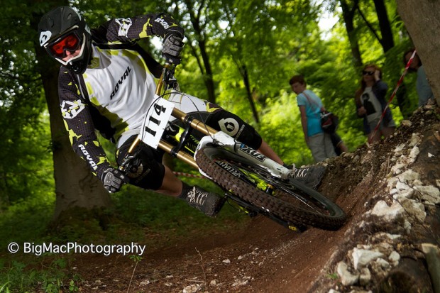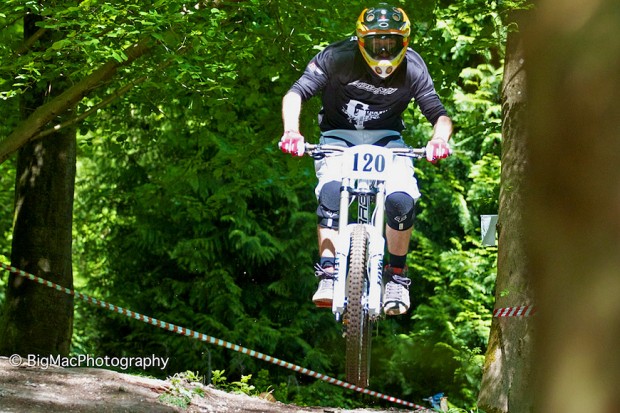 This was another place that had a really tricky corner, it got me every time that’s for sure. I’d get a good line into it but just not control my speed enough to hold the line and would either pause braking too late or drop a little low and miss the line to carry the speed. Once past this is was tight, twisty, rooty and it even had some steps in. This section was the slower part of the course but one where time could be made in the right hands. Out of here and we have the second road crossing, another haunt for the mass of riders and spectators. Over the road and it was a jump into a swooping left, then a swooping right, over a mound, a jump and a kinda big double that was just as fast to roll as it was to jump if you had the speed. So how did everyone get on?
