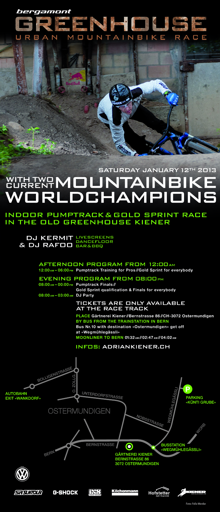 This event looks a gas, maybe a greenhouse gas. Anyway it’s clear to see that this race will be fun (just look through the windows). It’s all organised by former 4x rider Adrian Kiener and kicks off this weekend, 12th Jan, in Ostermundigen in Switzerland.