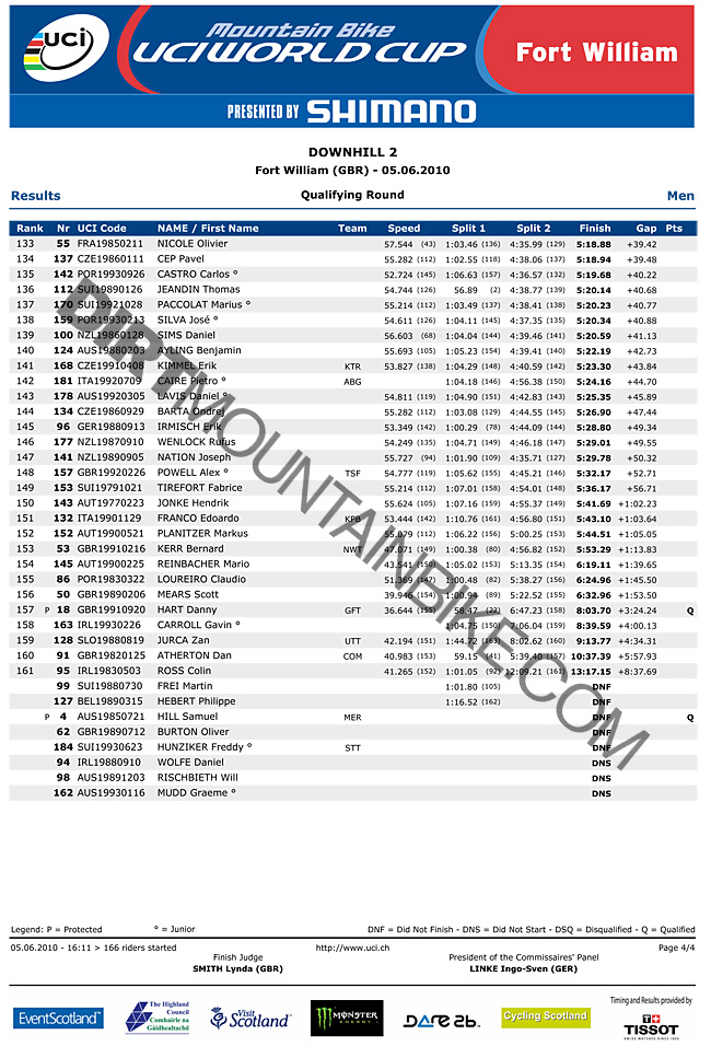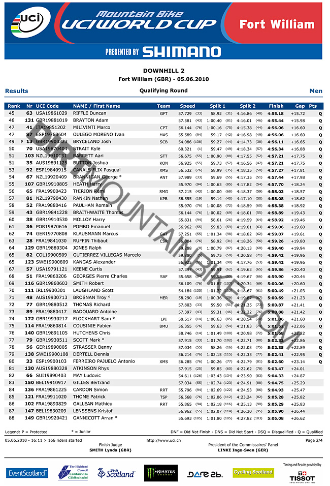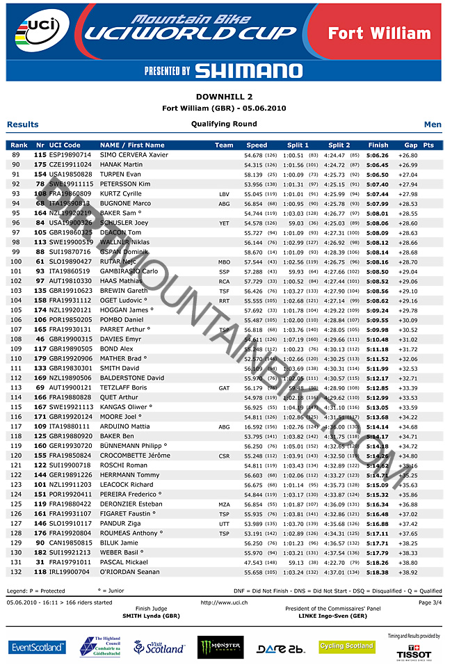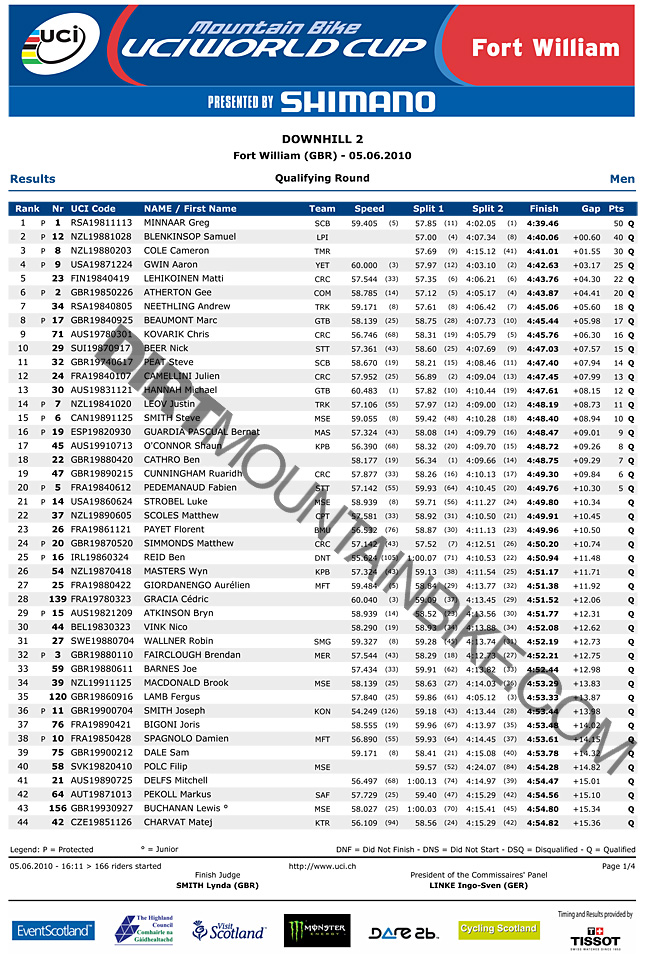 Santa Cruz Syndicate rider Greg Minnaar took pole at the Fort with a 4.39.46, just 0.60 ahead of Sam Blenkinsop and 1.55 up on Cameron Cole (we reckon Cam Coles transponder middle split is wrong but the final time is correct)