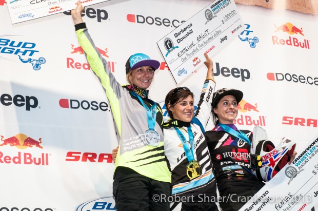 Crankworx Whistler’s Garbanzo Downhill course is infamous for being one of the longest and most challenging descents in the world of bike racing. Columbian Marcelo Gutierrez Villegas proved his strength and speed today on the grueling 7km track which drops over 3,400 vertical feet into the Whistler Valley. Gutierrez Villegas claimed the win on the men’s side with a personal best time of 12:28.24. The second fastest man was Sam Blenkinsop (+7.43), and in third was Remi Gauvin (+20.47). There were some pretty big names further down the field too.