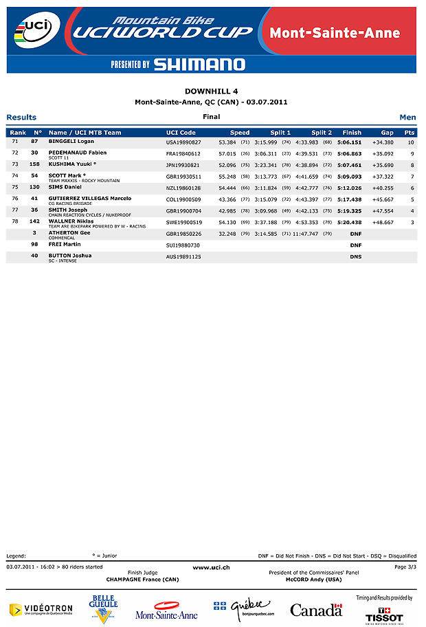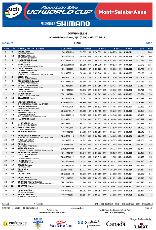 Aaron Gwin wins UCI World Cup round 4 at MSA, Quebec, Canada.