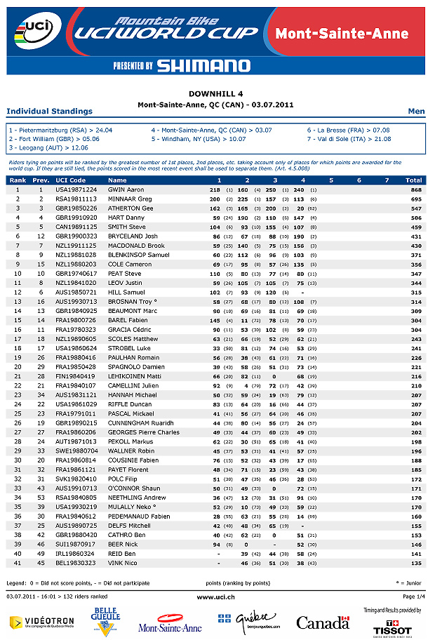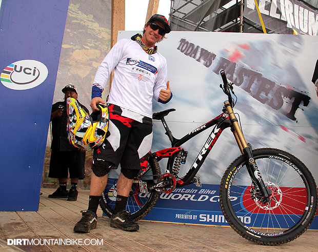 A rare mistake from Greg Minnaar meant that Aaron Gwin took his third win out of four races this year. Josh Bryceland was a sensational second after narrowly beating an awesome run from Brook MacDonald. Another top result and wild run from Danny Hart for fourth. Big Cam Cole made it two New Zealanders on the podium with the Brits and American