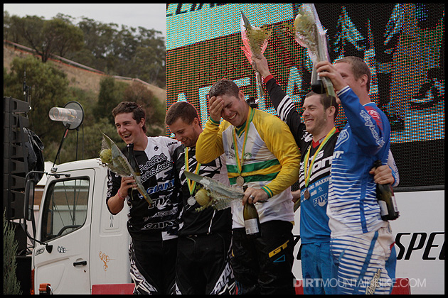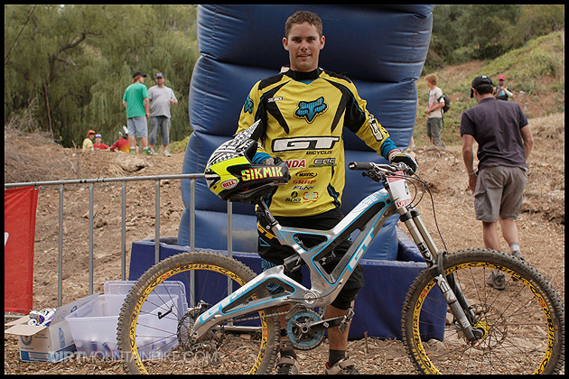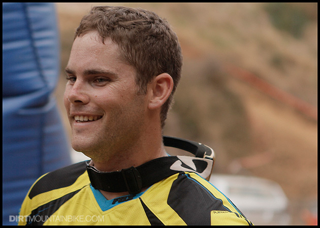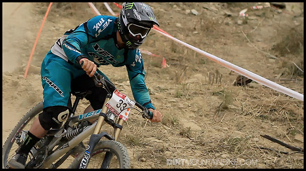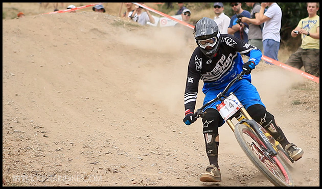 Mick Hannah sealed the win with a 2:02.36, two seconds up on second place Josh Button, with flying Bryn Atkinson in 3rd. Must have been close with 2nd, 3rd and 4th all on the same second. Reigning champ Chris Kovarik crashed hard in the bottom section.