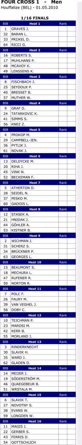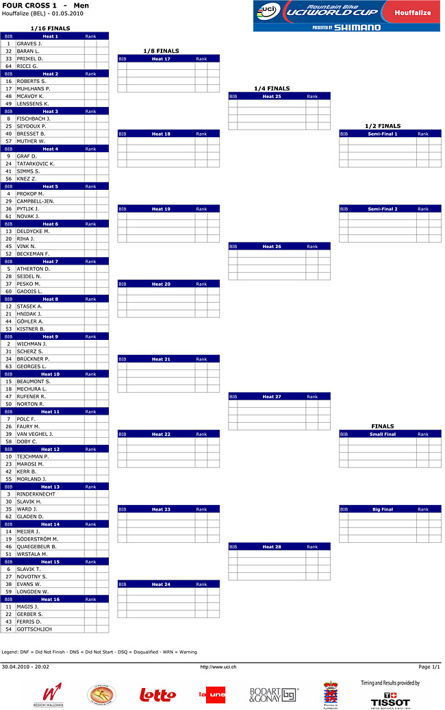 Heres how the riders line up for tomorrows finals. Remember finals are at 20.30pm Belgium time.