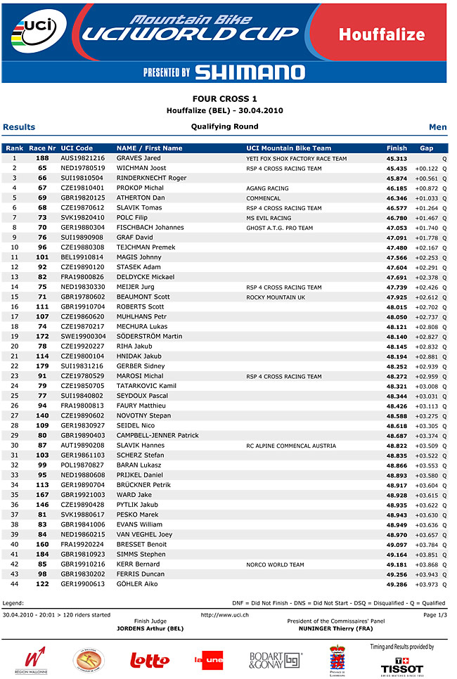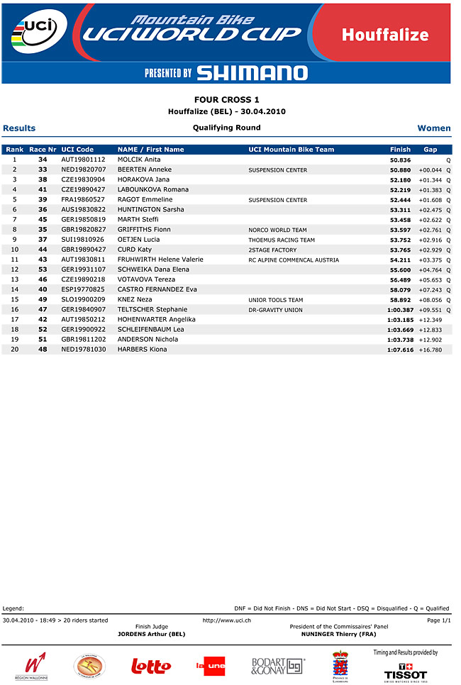 Late arrival Jared Graves and Anita Molcik go fastest in 4x qualifying. Just look at freeriding dirt jumper Martin Soderstrom, 19th spot.