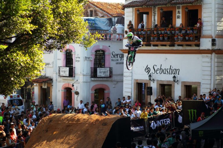 You can just about make the top in this photo, it will take riders only two minutes to make it down. Mental!