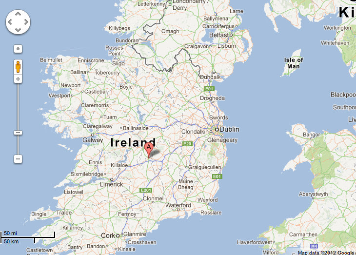 If your geography is as bad as mine, then Roscrea in Co. Tipperary is here.