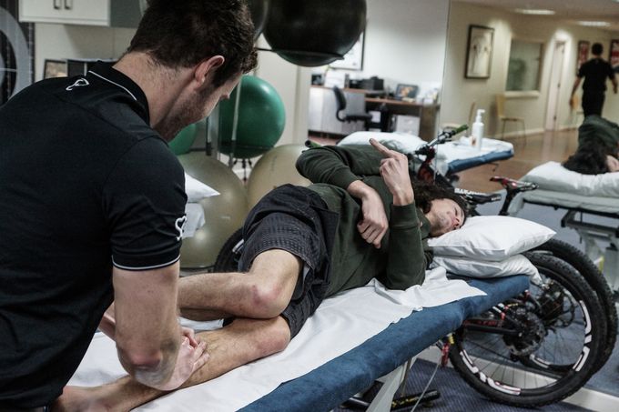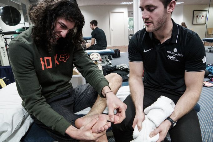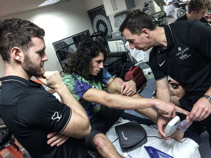 One of our team Physiotherapists, Laura Robson, was already out at the race with the Atherton Racing set up, as she had been for the whole season, so messages were sent to her to see if she could assist in any way but the medical team on site did a great job looking after him and made sure that he had everything he needed. Further to that Will Longden, the Team GB manager was very quick to make contact with us here at Harris & Ross Perform to make sure that there would be provision for Ratty when he came home. Added into that were Kathy Sessler, Syndicate team manager and Peaty who also wanted to make their rider and his team mate would have every opportunity to make the best recovery possible. What I am getting to is that Ratty is kind of a big deal, people know him and they were all straight into action to get the lad fixed. This is great so long as there is some direction and everyone isn’t pulling in their own directions.