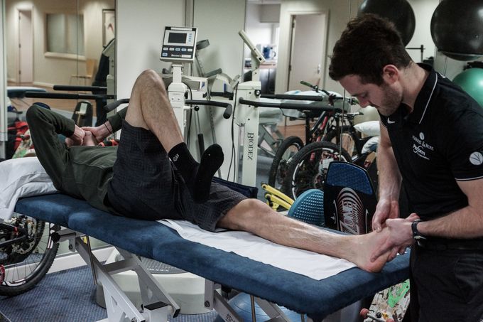 On his return from Norway Ratty came to see us and we arranged a consultation with a specialist foot and ankle surgeon that we work with, Mr Rob Smith. Along side this, Ratty was also assessed by Doug Jones, our Clinical Director. Mr Smith was very complementary of the work that the surgeons had done in Norway. This was a huge relief as a mid foot fracture, also known as a Lisfranc injury extremely serious. For a premiership rugby player, potentially career ending! With a clearer understanding of the extent of the injuries, the team then put together a plan for the next twelve weeks that would keep Ratty off his foot. This had to keep the rest of his body in check without losing too much fitness or strength as well as actually enjoying his off season and being away from the pressures of racing, not that I am convinced Ratty feels pressure the same way the rest of us do!