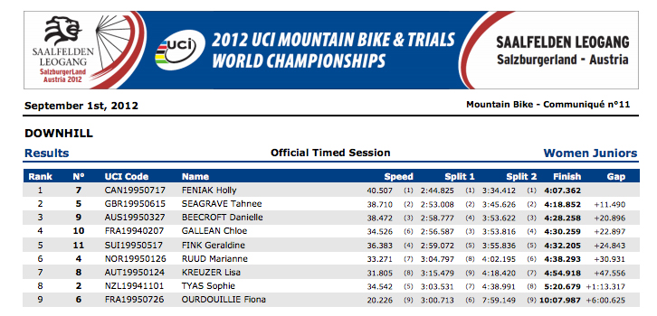 It’s timed session day at Leogang today. Mick Hannah, Emmeline Ragot, Holly Feniak and Loic Bruni are top of the seeding pops!