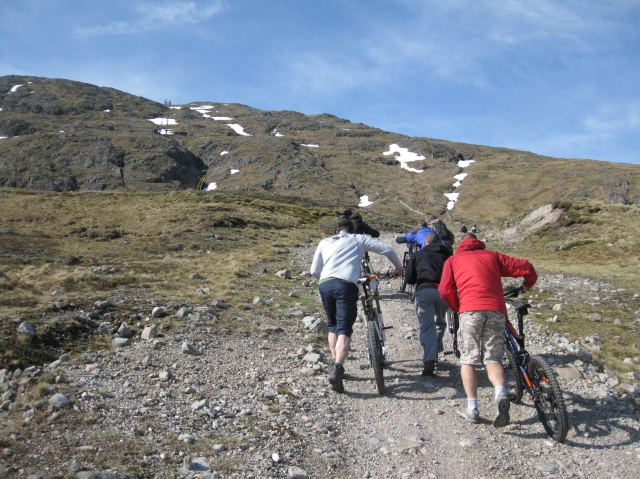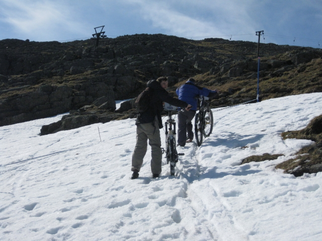 We turned off the track as the snow was slushy and hard going, really hard work now to hike a bike.