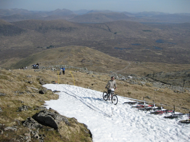 At last years DH enduro Frazer dropped the plan on us in the bar, we where all sold as soon as “helicopter” was mentioned. That was a while ago. A lot has changed mostly fuel prices which pushed the fee up, then the lack of snow killed off the piste bashers running the bikes to the summit, it was a gamble by no fuss to even think about trying this event, they pulled it off, a lot could have gone wrong, if the weather changed the Heli would have been grounded, variables out of no fuss’s control (it did get windy) the floating nature of the event as well, late march/early April, then April, then May 1st then 6 days before the date it changed to April 30 the day i was planning to travel up…..royal wedding made sure the motorway was quiet when i went, i got there friday lunchtime to hear that Frazer was having trouble staying upright somewhere on the mountain marking the route, so its a bit steep then ? the staffers in the ticket kiosk asked if i had been up there before, i havent but i can manage Fort William ok….. the locals think thats the easy track and i might have issues on there mountain.