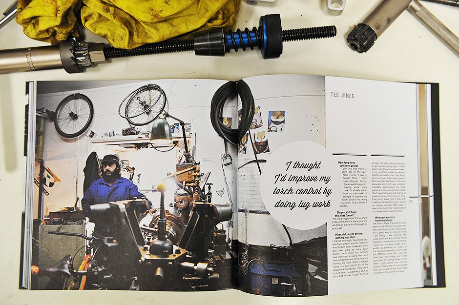 “The authors, Matthew Sowter and Ricky Feather, travelled around the country along with talented photographer Kayti Peschke, to interview the people who are leading this industry. Each artisan shares their methods, their passion, their skills and their quirks. Through these intimate conversations they express what makes them unique in this international art. The book showcases exquisite photography of the frame builders and their working environment, contrasting the raw, rough workshops with sleek images of the beautifully finished final products.”