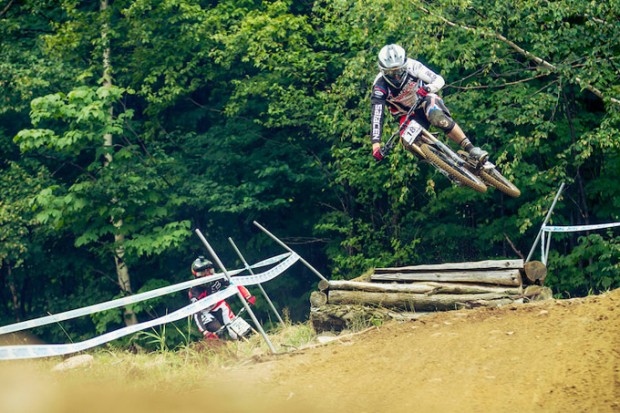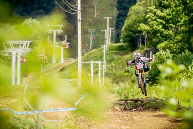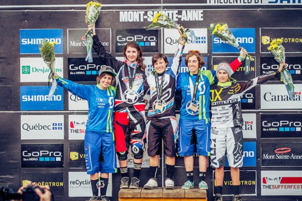Girls up first and the top five was wide open. Close times from qualifying gave nothing away and all were pushing hard in the upper sections of the track. On this long and demanding track it’s speed at the bottom of the hill that counts for a lot. As the steepness mellows with just the technical rock sections to go, it is vital to carry your speed and your strength all the way to the line. Manon crossed finished and went 3 seconds up on Florian Pugin. With three left to go she crossed her fingers, would it be enough for the win today? Emmeline Ragot is a veteran of the Mt St Anne hill and was on a storming ride, strong and aggressive she crossed the line taking the hot seat. Eyes back to the hill then with Atherton to come, she too was pushing hard and paid the price with two mistakes costing her dear. So a great second place for Manon despite a look in her eyes that suggested, “damn, second again”. She will push harder than ever to go one better at the World Championships which is next up on the schedule! She also strengthened her position in 3rd overall in the World Cup series.