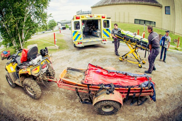 After a day of settling in and track walk, practice soon came knocking and unfortunately for Harry, it came knocking very, very hard! Towards the end of the day as he started to push for extra seconds, he made a mistake mid-way down the hill at about 30mph and was high sided straight to his head and shoulder. Several worrying hours later and he started to remember who we all were, where he was and sadly for him; the reality that his race weekend was over. The hospital in Quebec was great and Harry was given the OK to check out once they’d run him through every machine in the place to make sure there were no more serious injuries other than the bad concussion. Strong and determined, Harry will be back to full speed for the next Saracen BDS race in a weeks time…