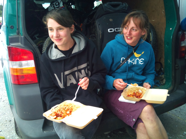 I watched so many girls clear the step down easy but I still hadn’t done it, although I knew it was simple and the chicken line was much harder! One of the marshals even told me I needed a slap and he was right – when I eventually got round to doing both drops they were they easiest things in the world. Once I’d sorted myself out I felt much better, although I was feeling nervous about qualifying the next day because I knew that although I felt fast, everyone would be going fast and I didn’t really know what to expect.