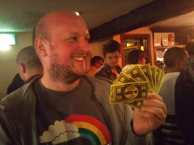 After qualifying we went to check out the Dirt party for a bit, but had to leave before everything kicked off to go get some pre-race sleep but we did have time to raid the bank of Dirt and nick some Dirt money, and Emily found two red and green men!