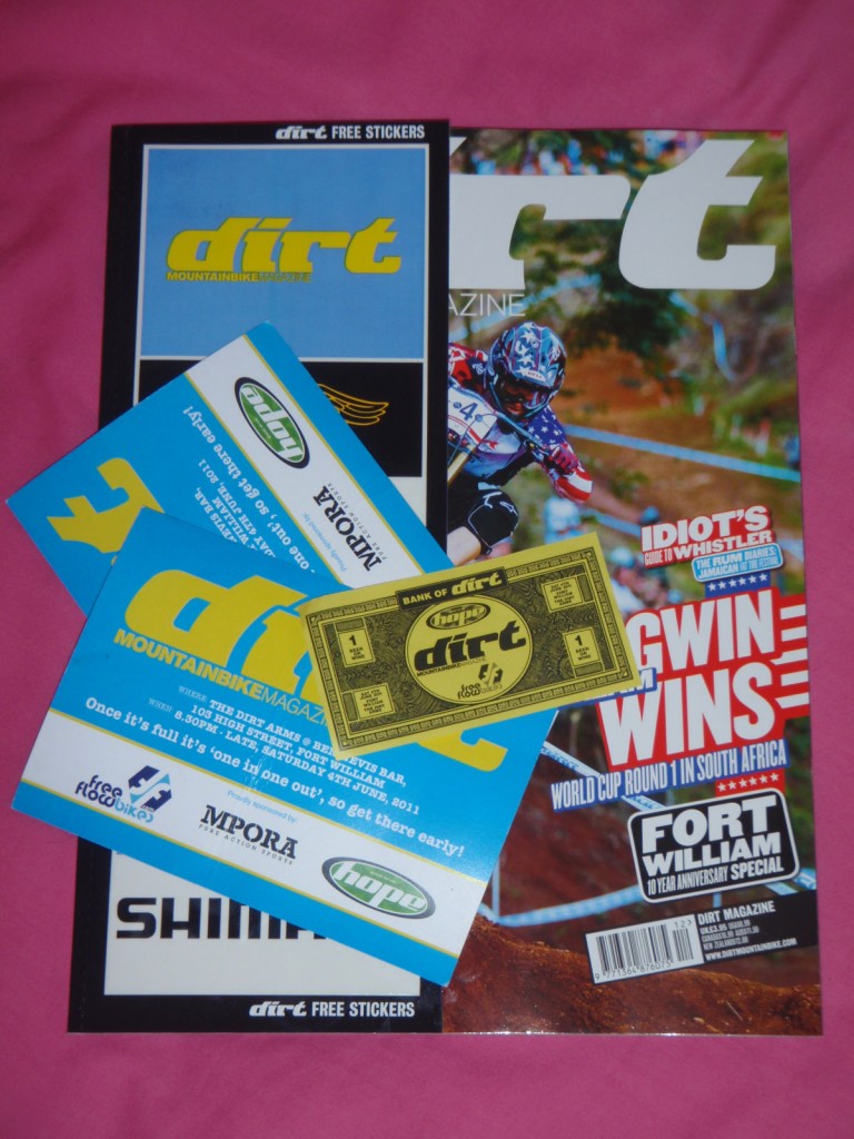 Bits and bobs from Dirt we’d managed to pick up over the weekend, including free magazines!