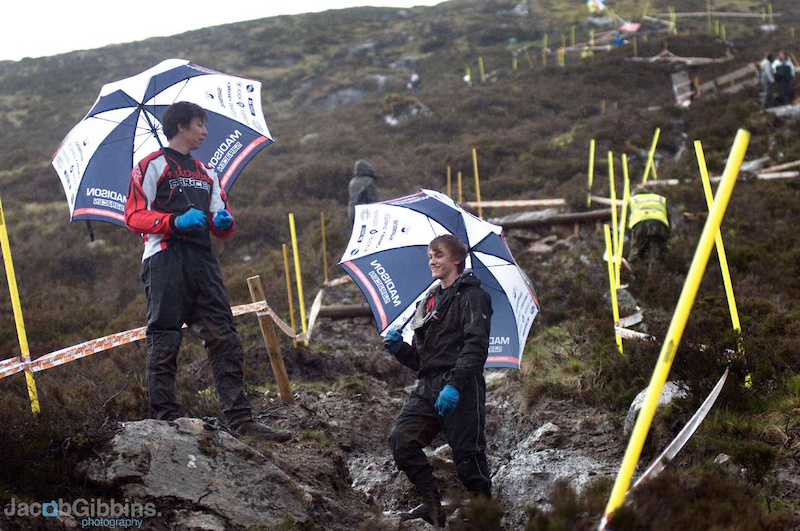 The whole week leading up to Fort William was pretty grim weather-wise. On Monday we rode the World Champs XC loop with Harry, Jack Geoghegan, Andy Ayers (Team Manager) and Gibbins after getting a bit lost and making the mistake of riding down a natural descent Jack found off the side of the path. After all the wet weather the track was about a foot deep in sludge most of the way down – you can see why most of Fort William is built out of rock! After drying off, watching Harry doing sprints up and down the car park in the rain and skipping competitions in the car park me and Jase went home to play XBOX whilst the others we to find their campsite! I never really play computer games but I had had a few go’s on MX vs. ATV because it was a bit more interesting than Call of Duty, but after about an hour of coming last in every race and over shooting every corner because I was going too fast I got so annoyed I gave up and went to upstairs to revise!