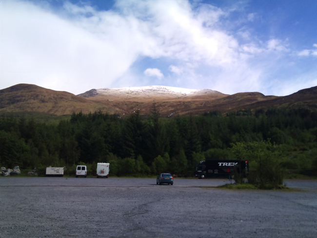 Trek were the first to arrive at Fort William. At some point after XC in the rain the clouds cleared revealing all the snow on the top of the mountain.