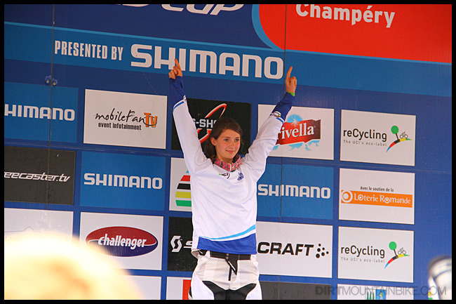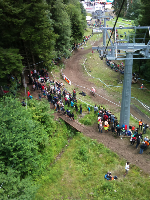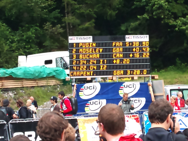 I got down the chairlift just in time to watch the top ten ladies. Again, not much footage of Manon on the big screen, shame, but she had a good first split, Mum and I were very excited. She crossed the finish in third place but then got bounced back to sixth by the top three. Not the podium she was looking for, but sixth, her best result so far. She crashed twice in her race run, once with the bike on top of her. Does anyone have any video??? Annoying for her, but hey, thats racing.
