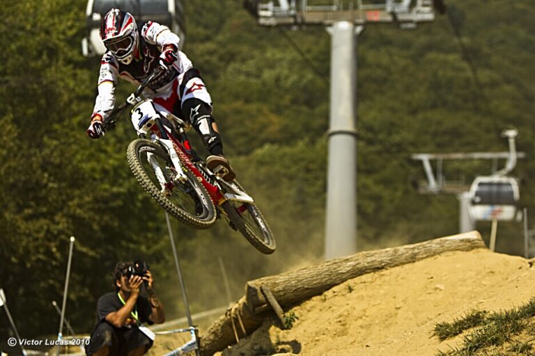 The track itself was steep for sure but not very technical in an MTB sense, Jones (Dirt Magazine) would have hated it. Digger built from top to bottom with just two or three rooty sections. Scarey fast jumps too. Seriously big at the bottom, but hey you’ve seen the track vids. I got one myself, I helped talk Tracy into a small huck at the bottom of the track, she had a go and crashed into the netting, it looks worse than it was, don’t think she hurt herself tho. I did feel a bit guilty afterwards. Pointless too because they took this line out for the next day.