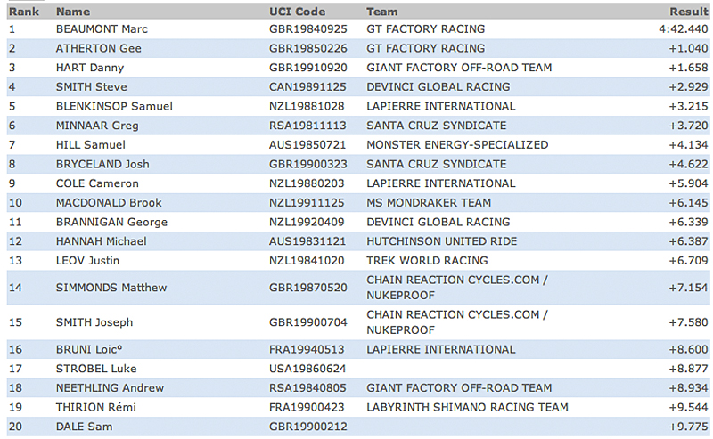 Marc ‘Slugger’ Beaumont goes fastest in Fort William with team mate Gee Atherton 2nd and Danny Hart 3rd.