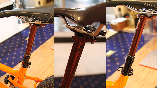 The new post has been two years in the making. From what I saw, it is clear the company has put a lot of effort into it: it’s a very well finished product. It combines hydraulic internals with infinite height adjustment and a cable operated bar-mounted lever, with 125mm of height adjustment.