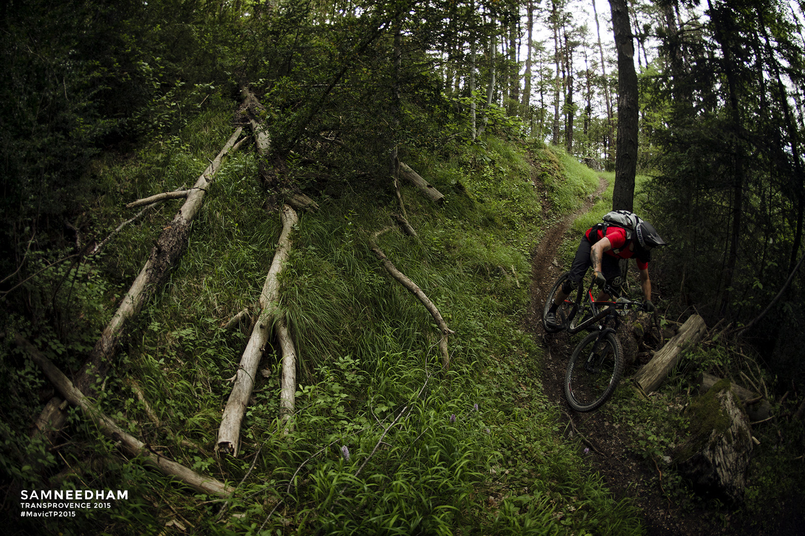 A lot of competitors took over 4 hours to get from the bottom of Val d’Entraunes up to the start of special stage 10. It’s fair to say that some of the Mavic TransProvence crew were waiting a little nervously at the bottom of the stage for the rider to reappear into the valley. A big traverse without a pay day can make people a little tetchy. We call this trail Narrow Wide. The verdict? “The best trail ever!” (interspersed with expletives) was the general summary shouted out by hyper pinprick eyed racers. A huge downhill section split into three distinct sections. Starting with lush tall grass in a forest hiding a perfect ribbon of singletrack (a very distinct thing to this valley) where trusting that there was no hidden rocks in the grass meant warp speed traversing. We like to call this ‘faith-based riding’. Then into a rockfest before spewing into oak leaf and dust filled natural berms. Riders with spit flecked mouths shouting at each other about just how good it really was, in range of expletives both colourful and sometimes distinct to nations.