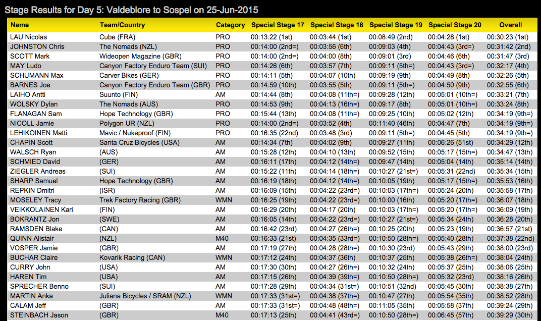 DAY 5 STAGE RESULTS