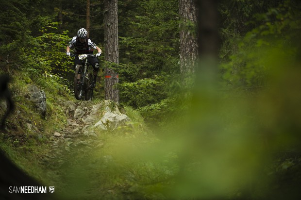 This year special stage 20 had moved across to a much faster ridge line trail that sweeps back and forth across the hillside onto some unrelenting switchbacks that took riders out to the end of the stage and onto a challenging river side trail.