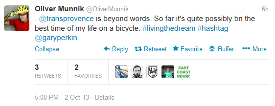 It’s great to see a few amateur riders amongst the top 20 too, Chris Ball is in 9th, Oliver Munnik is currently 14th and Stu Thompson is 18th. The Trans-Provence attracts a wide range of riders each year with the majority more focused on the experience rather than the racing/timed aspect, it’s easy to see why it’s become so popular – it provides the best of everything, competition, spectacular riding and one hell of an adventure!