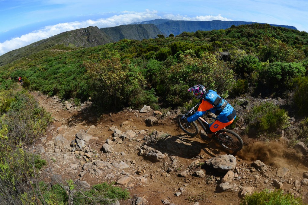 Practice was well and truly underway on Réunion Island yesterday, although you wouldn’t have thought it! Four hours to walk the top third of the Megavalanche track and we only came across about 20 riders! Due to the massive elevation of the Island uplifts take at least an hour, so most riders do just the one practice run per day. Think of the place as a very very hot version of an Alpine resort accept the town is at sea level with the mountains the same height and there are no chairlifts!