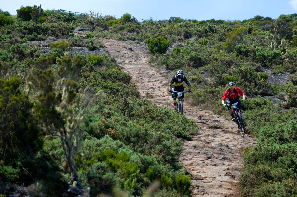 The top third is out in the open with sparse vegetation on very rough ancient solidified lava flows which will destroy wheels/tyres/mechs/anything you put in the wrong place, thankfully it’s relatively cool up there with a nice breeze to give you a helping hand when your lungs are bursting. This section fades in to a dry wooded fairly technical area interspersed with flat out open grass sections.