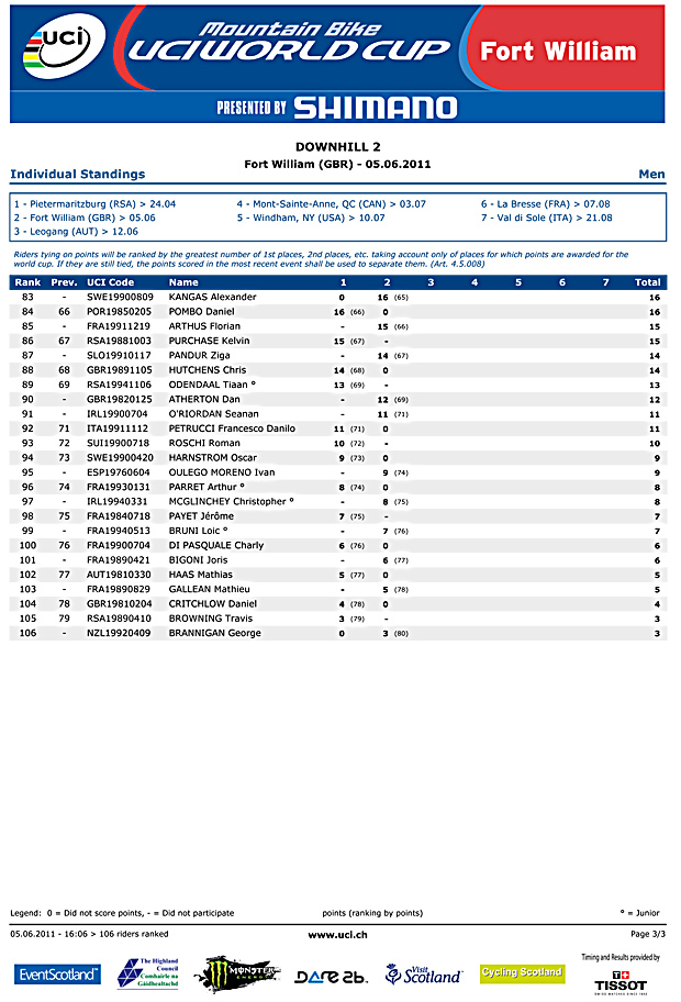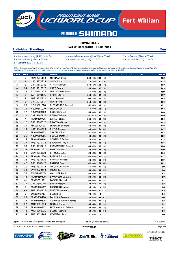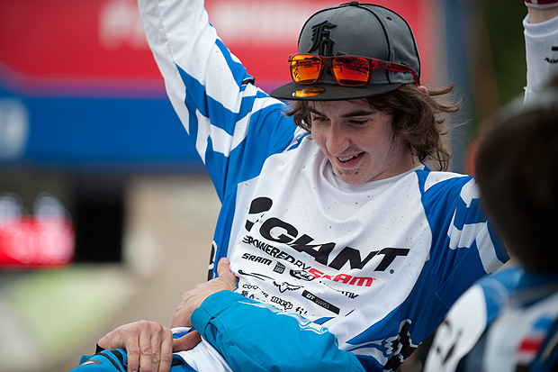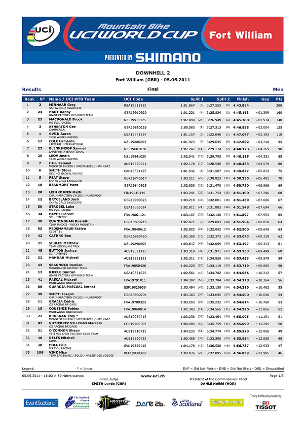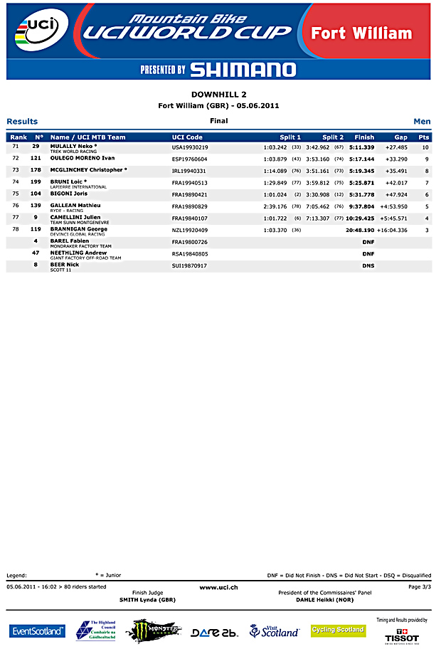 Camellini was up on the first split but then punctured, Barel crashed out, Cunningham was up, so too Steve Smith, Hill came down and went into third but ended up a disappointing ninth. With MacDonald guaranteed his first World Cup podium there was just Minnaar, Hart and Gwin to go.