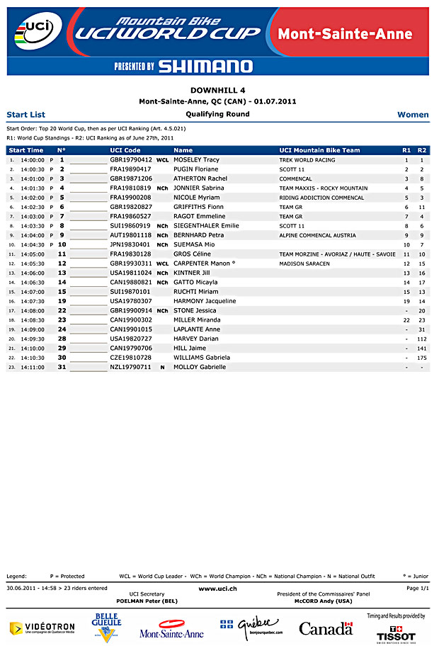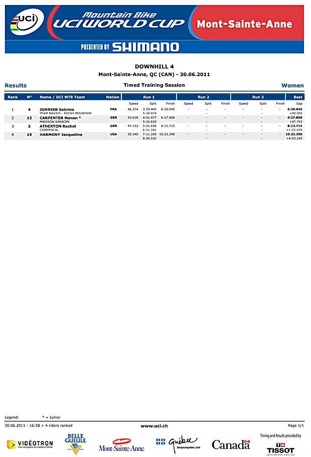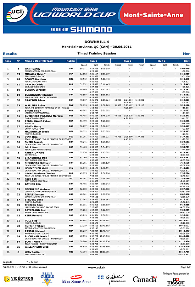 A bumper post full of Mont Sainte Anne facts and figures. Danny Hart and Sabrina Jonnier put the muddy markers down and go fastest in timed training.